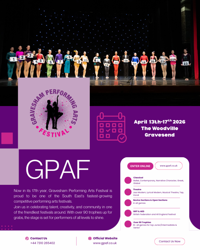 Now in its 17th year, Gravesham Performing Arts Festival is proud to be one of the South Eastβs fastest-growing competitive performing arts festivals. Join us in celebrating talent, creativity, and community in one of the friendliest festivals around. With over 90 trophies up for grabs, the stage is set for performers of all levels to shine.